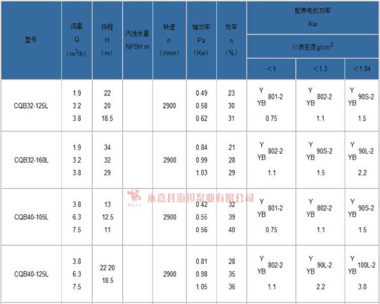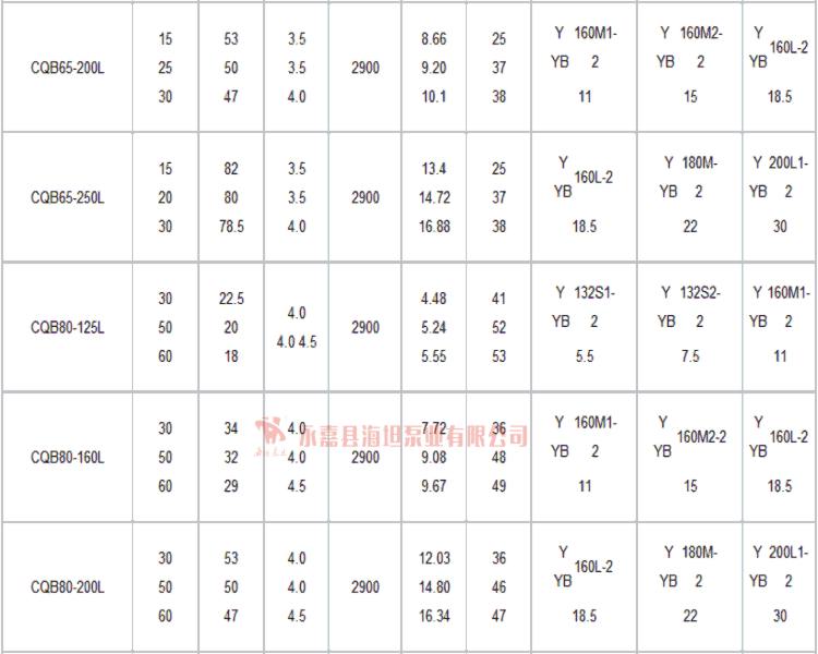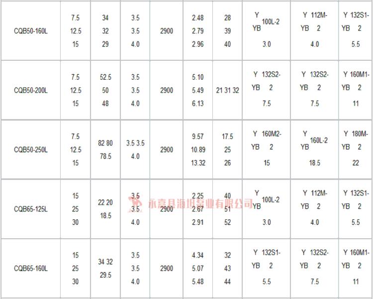 6、泵的绝大多数零部件与CQB系列磁力泵互换,泵的性能与CQB系列相同;流量为3.2-100m 3 /h;扬程为20-80m;功率为0.75-75Kw