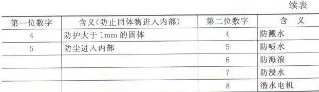表3-11 电机的防护等级