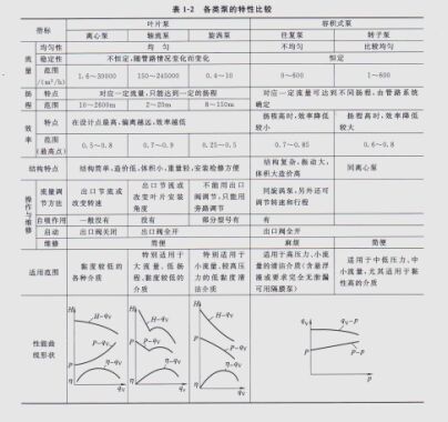各类泵的特性比较见表1-2.各种类型泵的适用范围是不同的,常用泵的适用范围如图1-3所示。有图可以看出,离心泵所占的区域*大。流量5-2000m3/h,杨程在8-2800m,使用离心泵是比较合适的。因为在此性能范围内,离心泵具有转速高、体积小、重量轻、效率高、流量大、结构简单、性能平稳、容易操作和维修等优点。国内外生产实践表明。离心泵的产值在泵类产品中是*高的。