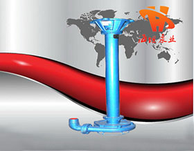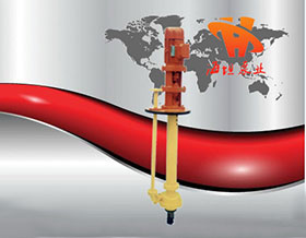 液下排污泵的立式电动机以螺栓固紧电机座上,并通过弹性联轴器与泵直接传动、泵体、中间接管、泵架、出液管、管法兰,以螺栓联接构成一体,固定在底板上,泵的整体通过底板安装在容器上。泵的轴向力与径向力,(包括泵运转中所产生的水压力,叶轮及转子重量等),均由轴承盒内所装单向推力球轴承,单列向心球轴承;以及滑动导轴所承受为保证泵安全正常运转。轴承以黄油润滑之,导轴承同所输送的液体润滑。因此,工作时液面必须高于叶轮中心线。液下排污泵伸入容器长度L的长短不同,则又分为中间导轴承结构和无中间导轴承的结构。