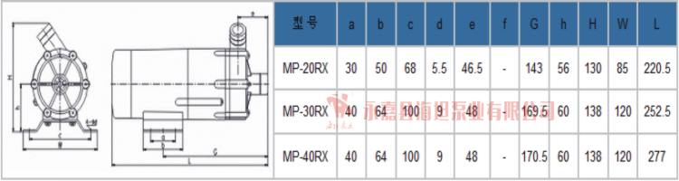 【MP型塑料微型磁力驱动循环泵】性能参数: