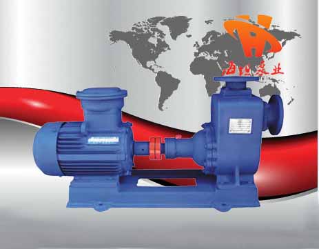 CYZ-A型防爆自吸油泵均采用轴向回液的泵体结构。泵体由吸人室、储液室、涡卷室、回液孔、气液分离室等组成,泵正常起动后,叶轮将吸人室所存的液体及吸人管路中的空气一起吸人,并在叶轮内得以完全混合,在离心力的作用下,液体夹带着气体向涡卷室外缘流动,在叶轮的外缘上形成有一定厚度的白色泡沫带及高速旋转液环。气液混合体通过扩散管进入气液分离室。此时,由于流速突然降低,较轻的气体从混合气液中被分离出来,气体通过泵体吐出口继续上升排出。脱气后的液体回到储液室,并由回流孔再次进入叶轮,与轮内部从吸人管路中吸人的气体再次混合,在高速旋转的叶轮作用下,又流向叶轮外缘……。随着这个过程周而复始地进行下去,吸人管足各中的空气不断减少,直到吸尽气体,完成自吸过程,泵便投入正常作业。因为该泵具有这种独特的排气能力,所以此泵能输送含有气体的液体,无需安装底阀,使用在油轮上时具有良好的扫舱功能。