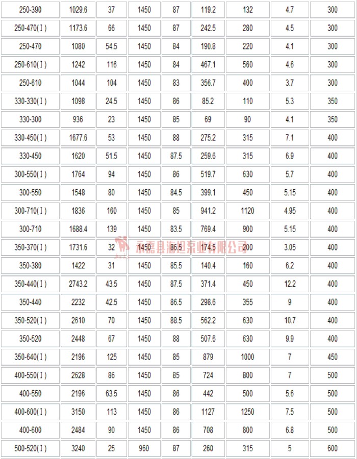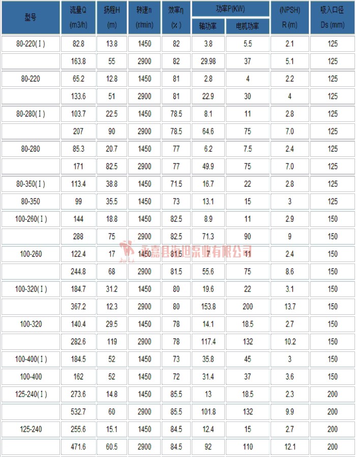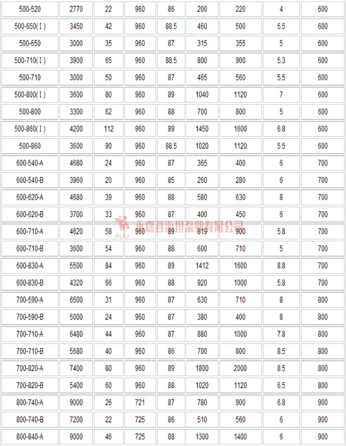 【SOW型卧式中开蜗壳式双吸离心泵】性能参数: