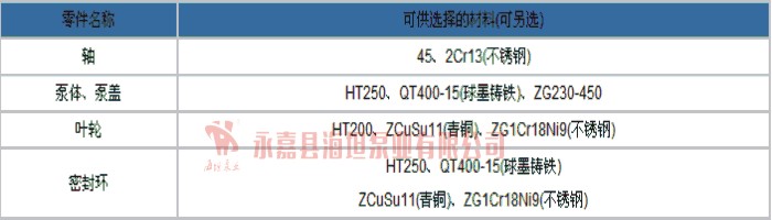 1、许用工作压力为2.5 MPa;即泵入口压力+泵扬程≤2.5 MPa。根据泵壳承受的*大压力,泵体和泵盖材质采用灰口铸铁(1.6 MP a)、球墨铸铁(2.0 MPa)、铸钢(2.5 MPa)。在订货时敬请注明泵的承压情况或材质。