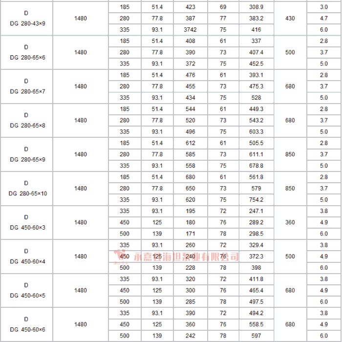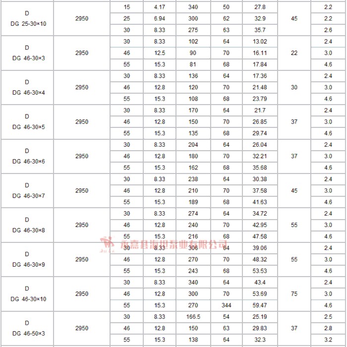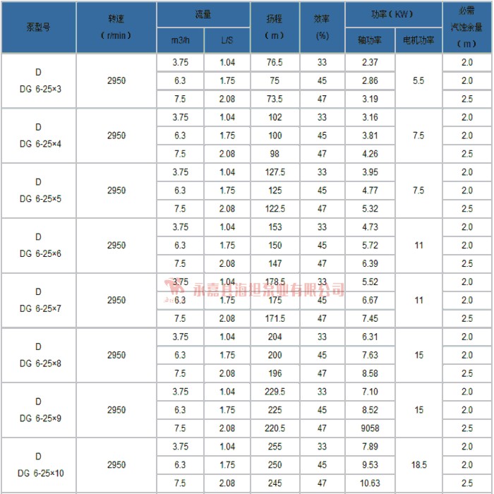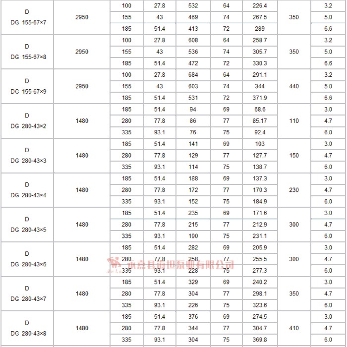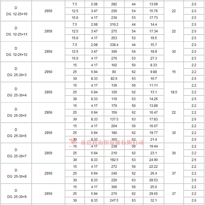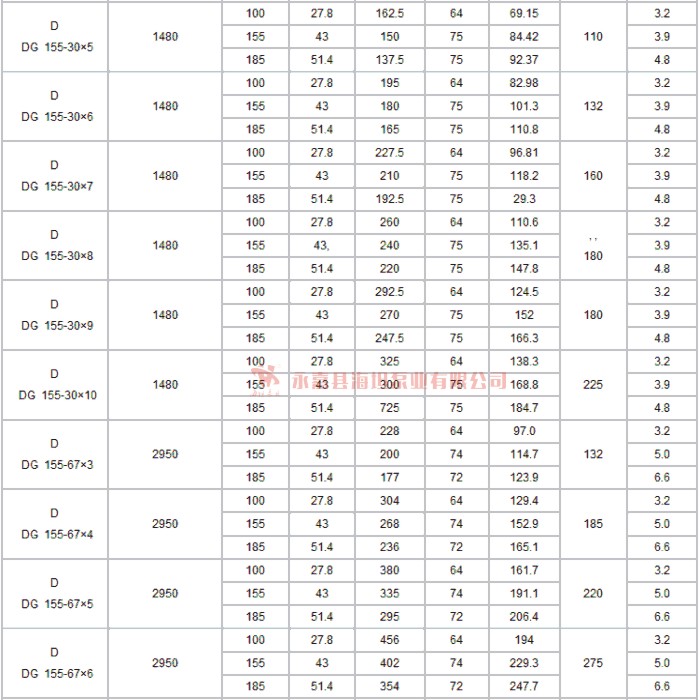 D、DG型泵系单吸多级分段式离心泵,供输送清水及物理化学性质类似于清水的液体之用。泵扬程H19至245.7米,流量为18至162m3/h,液体的*高温度不得80℃,适用于工业和城市给排水、高层建筑增压供水,园林喷灌、消防增压、远距离送水、采暖、浴室等冷暖水循环增压及设备配套等,尤其适用于小型锅炉给水。