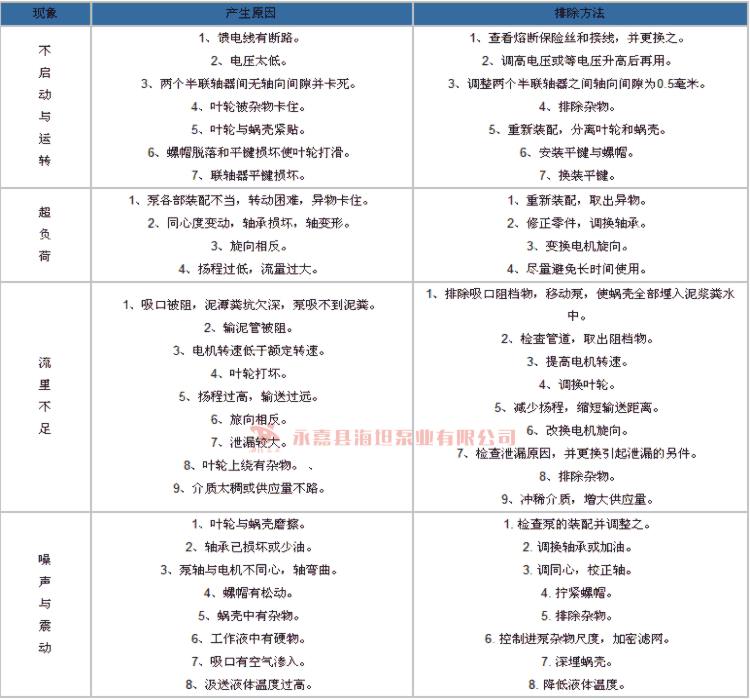 【NL系列立式泥浆泵】故障原因及排除方法: