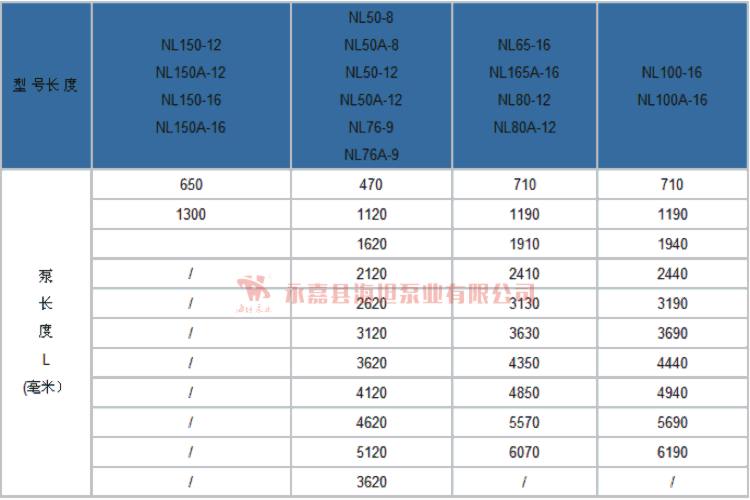 【NL系列立式泥浆泵】泵长度规格: