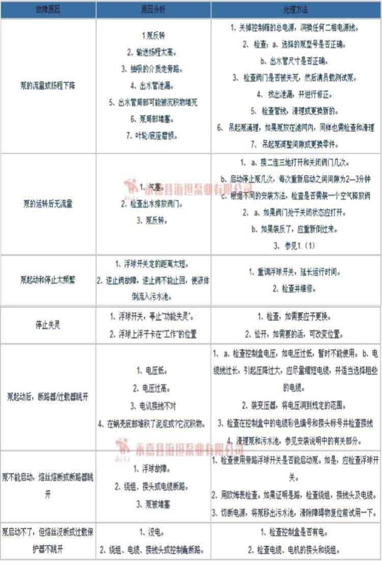 【AS型撕裂式潜水排污泵】故障原因及排除方法: