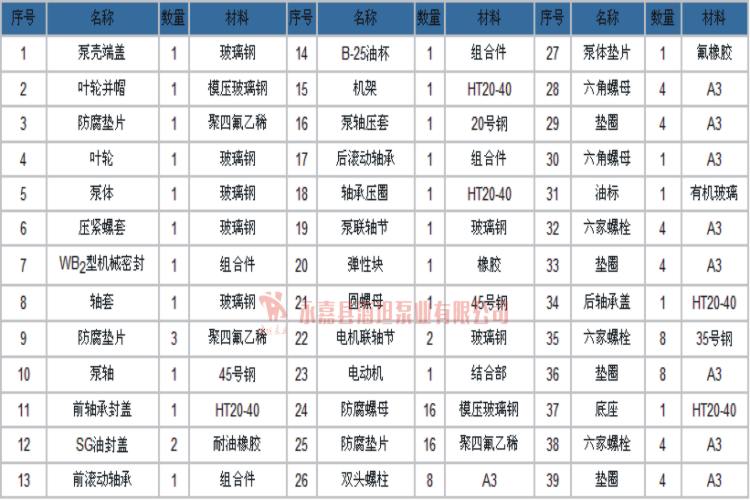 【FS型玻璃钢离心泵】零件目录明细表: