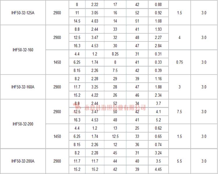 【IHF型衬氟塑料离心泵】性能曲线图:
