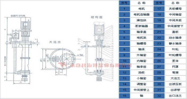 3、FYS型耐腐蚀液下泵更换流动轴承则底板不动,只要卸去电机及相应支架,卸去泵联轴器、压盖、圆螺母,取也轴套体。